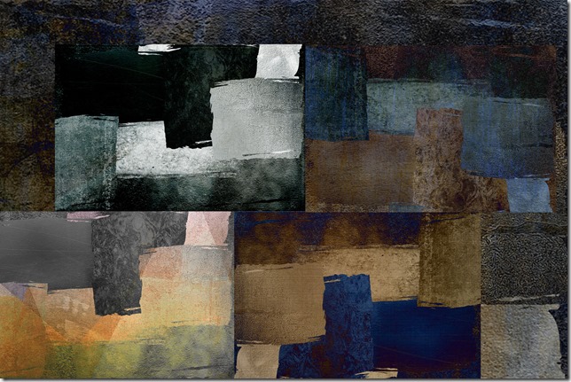 So I thought I’d add some textures to this and keep the resultant colours. And I created 4 which I liked and rather than just have 4 items in the gallery I put them together